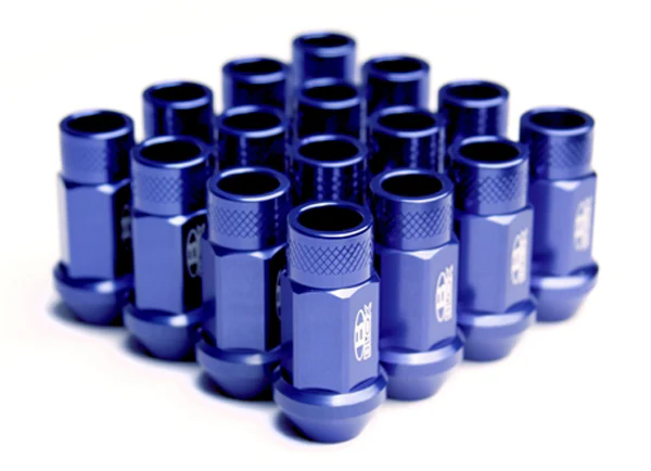 Blox Racing wheel lug nuts are forged from AL7075 aluminum/magnesium alloy for the ultimate in weight savings without any compromise to strength. The straight-through design allows Blox extended wheels studs to be used for optimum performance.